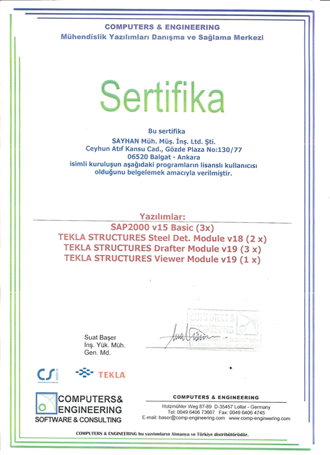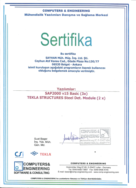 SAYHAN Mühendislik, sahip olduğu en son versiyon tasarım ve detay araçları ile yürürlükteki ulusal ve uluslararası bütün standartları (TS, EuroCode, BS, DIN, UBC, SNIP, AISC) kullanabilme yeteneği sayesinde alternatif çözümler üreterek en ekonomik ve uygulanabilir detaylarla müşteri memnuniyetine büyük önem vermektedir.